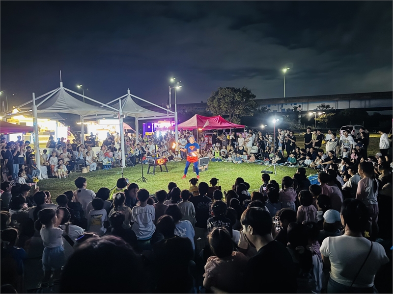 25일 저녁 참가자들이 체험을 마무리 하고 저글링 히어로 쇼 공연을 관람하고 있다. [유미화 원장 제공]