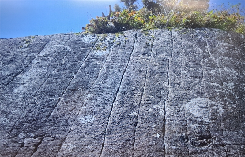 드론을 띄워 3D기법으로 촬영한 천왕봉 각석의 부분. 사진= 지리산국립공원 경남사무소 제공