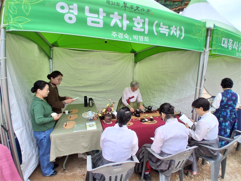 한편 이번 차 축제의 ‘찻자리 경연대회’에 ‘영남차회’ 소속으로 참가한 필자의 집안 일가인 조병욱(70) 박사·주경숙(66) 부부는 특별상을 수상했다. 필자의 질부인 주 씨는 영남차회 사무국장을 역임한 차인이다. ‘찻자리 경연대회’에 전국의 차 모임에서 26개 팀이 참가했다.
