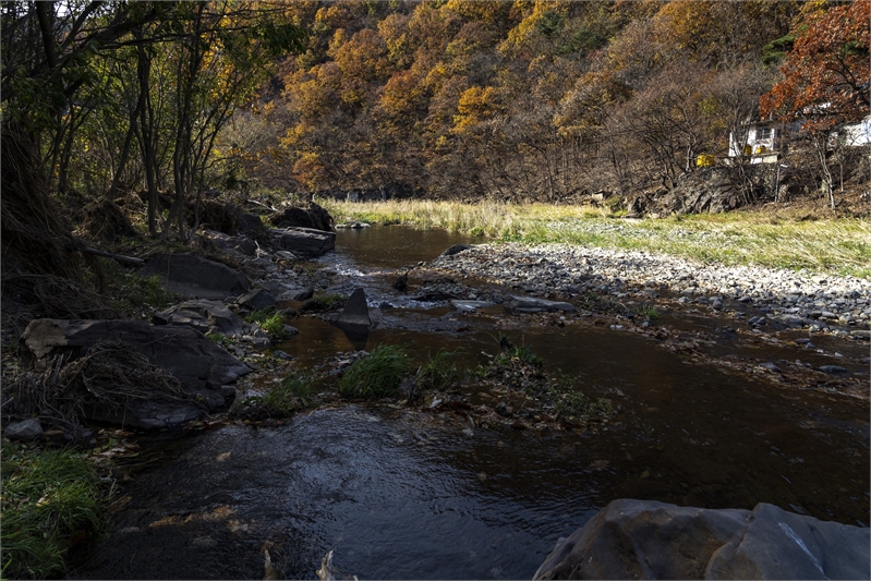 반구천 옆 산길을 따라 반구마을 쪽으로 천천히 발걸음을 내디딘다. 1km 남짓 거리. 늦가을 적막 속에 돌올해진 계곡 물소리에 귀가 씻기고, 천변의 갈대와 억새의 하늘거림에 눈이 부시고, 머리 위로 어지러이 휘날리는 형형색색의 낙엽에 마음이 시리다. 여태 사람의 손을 안 탄 반구천은 원시의 비경을 간직하고 있다. 금방이라도 돌도끼를 든 선사인이 함성을 지르며 뛰쳐나올 듯한 환상에 빠진다.
