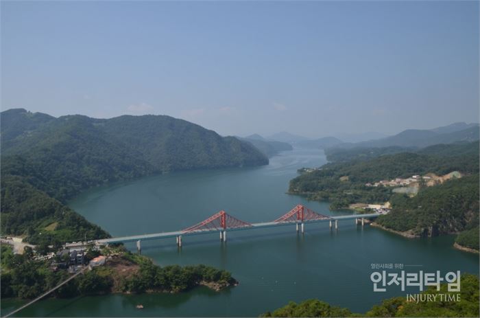 옥순봉 전망대에서 바라보는 출렁다리와 옥순대교