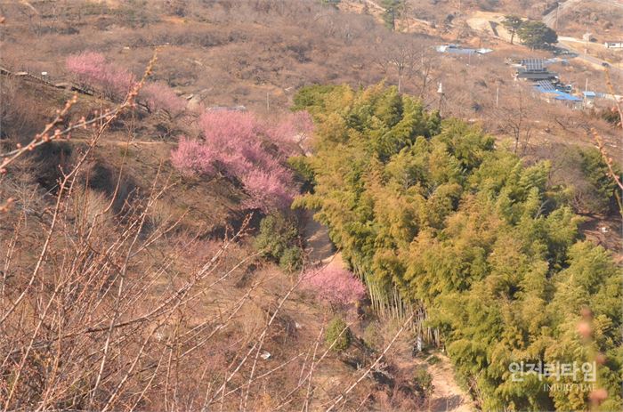 눈을 다시 돌려 여러 갈래의 길에 수많은 매화나무가 있고, 듬성듬성 홍매화가 붉게 피어 있다. 어느 길이든 걸으면 만날 수 있는 것이 매화나무이다.