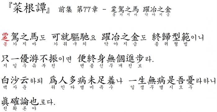 - 多病(다병) / 無病(무병) : 육체적으로 병이 많음 / 정신적으로 번민이 없음(생각 없이 인생을 사는 것).