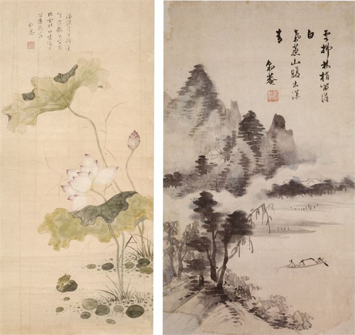 강세황(豹菴 姜世晃, 조선, 1713~1791) - 향원익청(香遠益淸)(左)과 강상조어(江上釣魚)