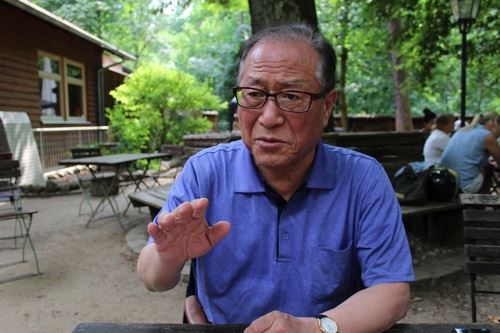 베를린에서 인터뷰 중인 정세현 전 장관[베를린=연합뉴스]