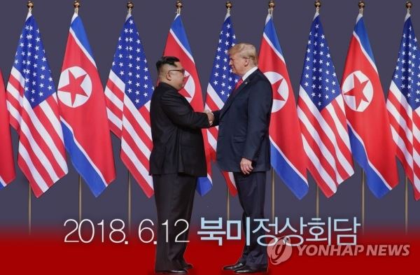 북미정상 역사적인 만남 (PG)[제작 장성구] 사진합성. 사진 싱가포르 통신정보부 제공