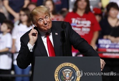29일(현지시간) 미국 버지니아주에서 정치유세 중인 도널드 트럼프 대통령 [AP=연합뉴스]