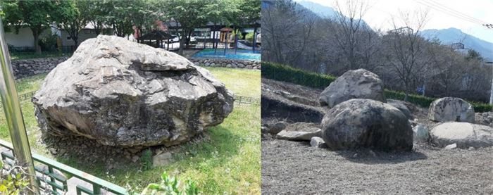 울주군 언양읍 서부리 남방식 고인돌과 언양 간월산 발치에 뒹구는고인들 비슷한 무덤덤한 바위들.