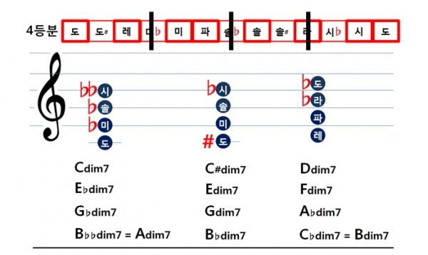 세 묶음으로 엮이는 디미니쉬드 세븐스 코드