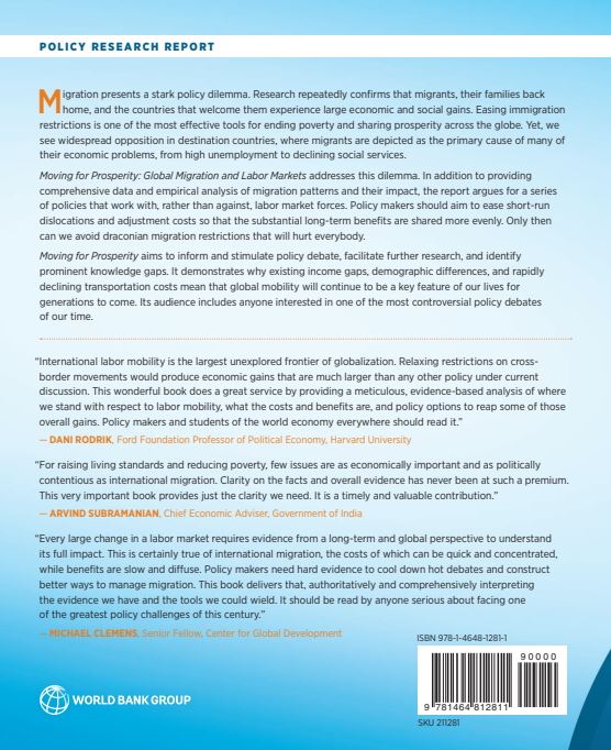 세계은행이 발행한 정책보고서 「번영을 위한 이주 : 국제이주와 노동시장」 뒷표지
