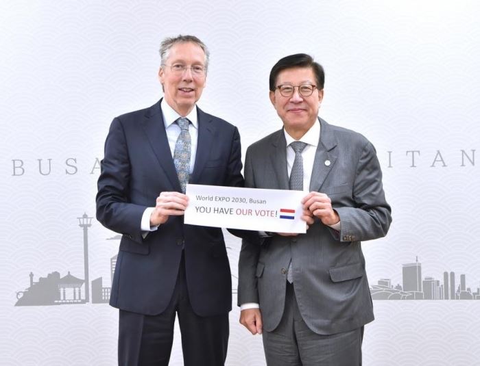 이날 페이터 반 더 플리트 주한네덜란드 대사는 박형준 시장과의 만남에 앞서 2023 조선해양 국제 컨퍼런스(코마린 컨퍼런스)에 참석해 네덜란드 국가관을 방문하고, 네덜란드 조선해양업체 관계자들을 격려했다.