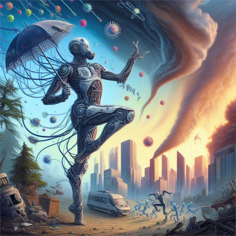 기후재앙과 기계인간이 득실대는 시대의 상상도 [마이크로 소프트의 AI기반 어시스턴트 bing이 그림]