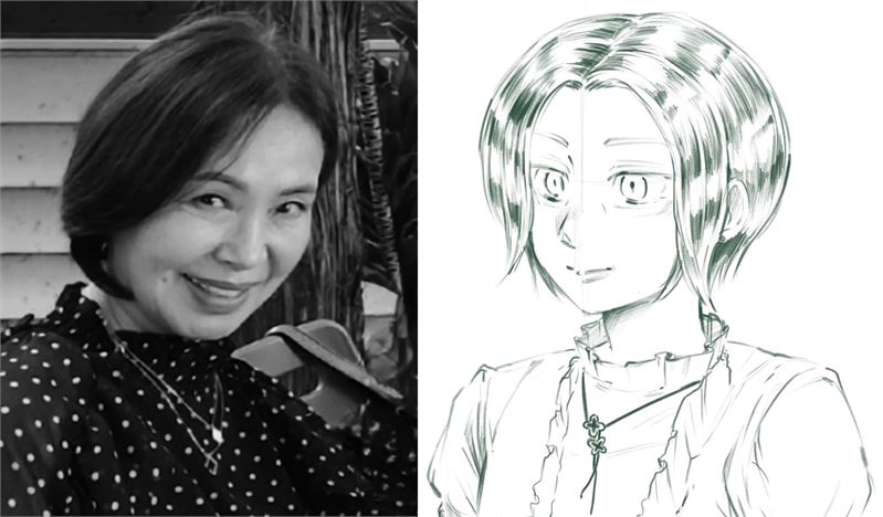 손현숙 시인. 오른쪽 그림은 손 시인의 '마음치유와 시' 수업을 듣는 학생의 커리커처.