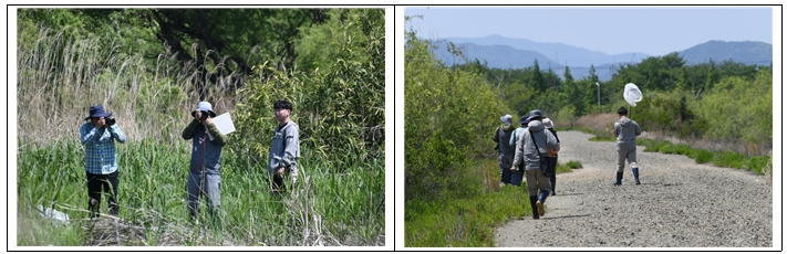 2023년 5월 경상대 이수동 교수팀과 한백생태연구소 김지석 소장 등이 참가한 대모잠자리 전문가 공동조사 모습 [습지와새들의친구 제공]