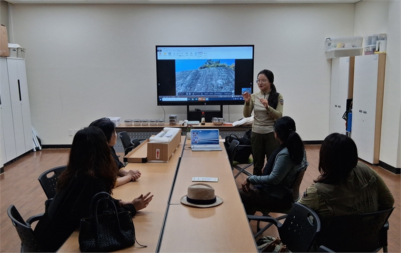 15일 오전 11시부터 지리산국립공원 하동분소에서 강수정 국립공원 경남사무소 팀장이 천왕봉 각석에 대해 설명하고 있다. 사진= 조해훈