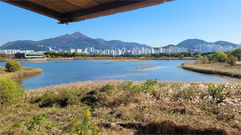 탐조대에서 바라보는 낙동강하구 에코센터 앞 습지 [사진 = 김해창]