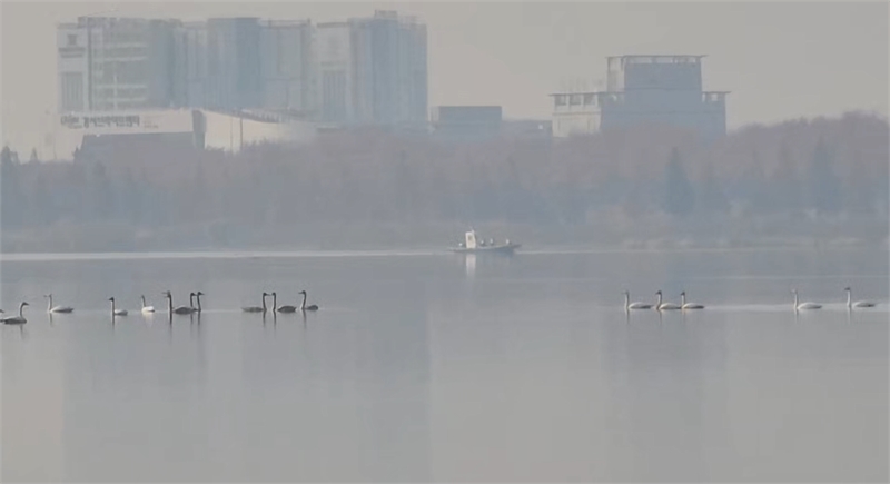 정체불명 선박 2척, 큰고니 무리 향해 돌진